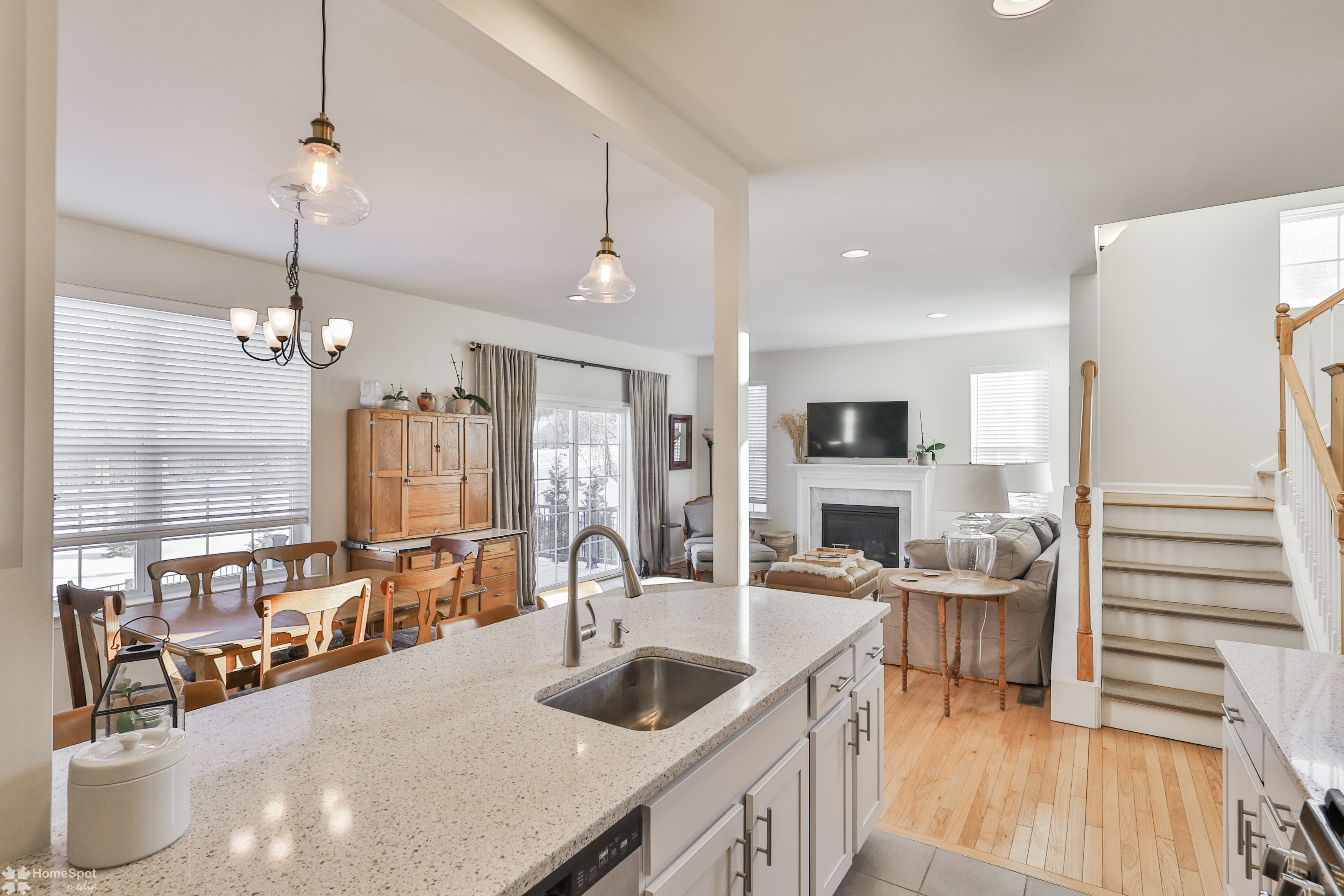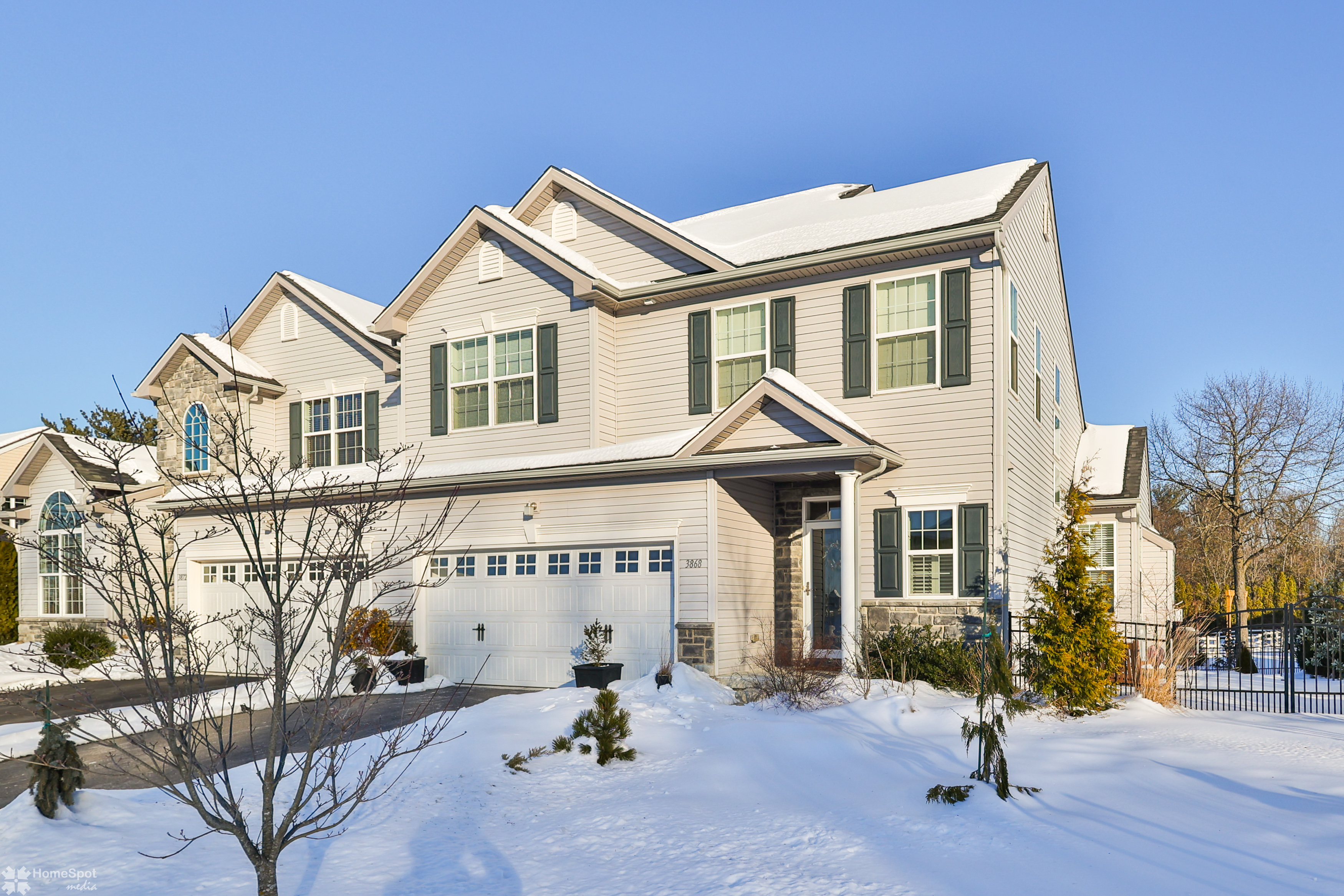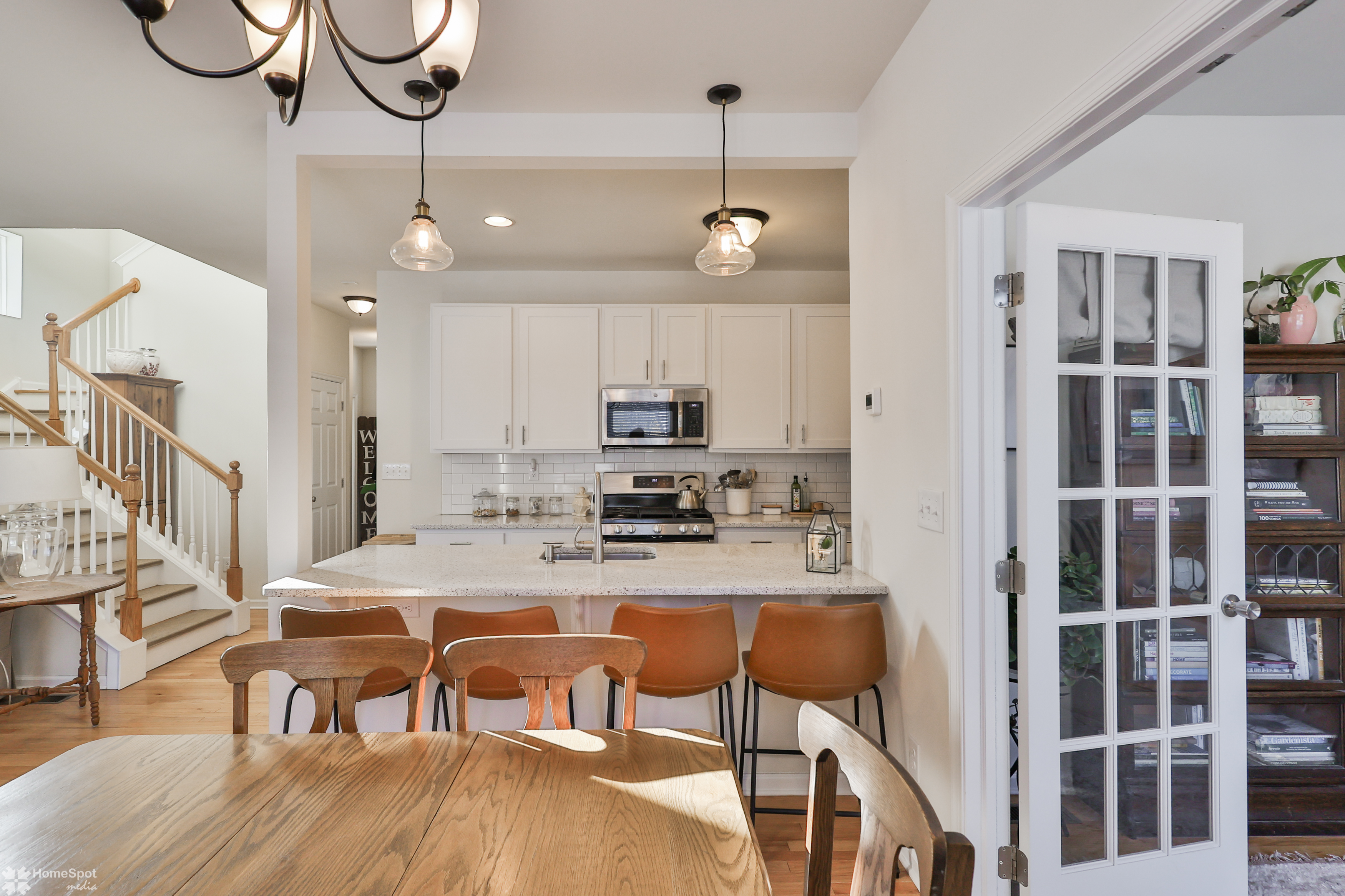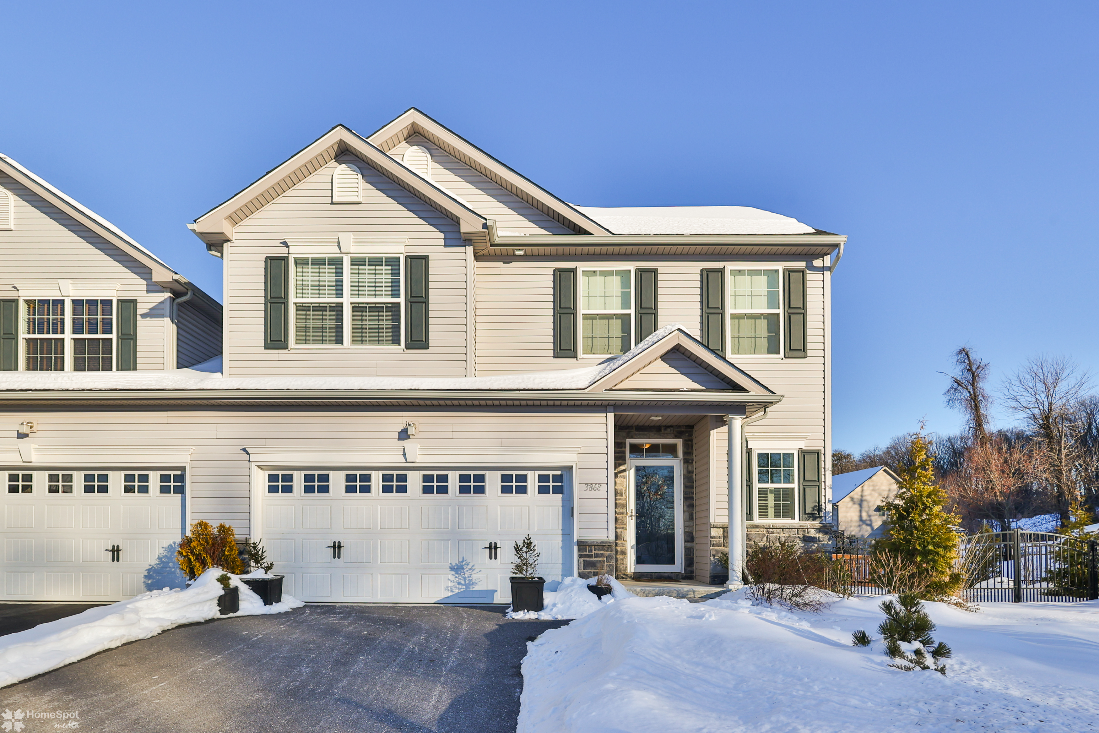 Welcome to this stunning, like-new twin home built in 2019 located in the desirable East Penn SD. This spacious residence features 3 bedrooms & 3 full bathrooms, offering comfort & functionality for today's lifestyle. Step inside and admire the gleaming hardwood floors that flow seamlessly throughout the home. Large windows fill every room with sunshine, creating a bright and inviting atmosphere. The open-concept layout connects the kitchen, living room, and dining area. The kitchen boasts elegant quartz countertops, a tile floor, and a huge walk-in pantry. The living room is anchored by a cozy gas fireplace and sliding door leading to a beautiful Cumaru wood deck. A private office with French doors is conveniently located on the 1st floor, providing a quiet retreat for work or study. Upstairs, you’ll find 3 generous bedrooms. The master suite is a true sanctuary with a massive walk-in closet and all-tile ensuite bath. The 2nd bedroom also features a walk-in closet and plenty of space, while the 3rd bedroom is comfortable & versatile. The laundry area is located in the upstairs hall/loft for added convenience, along with a full bath featuring a tile floor and a tub/shower combo. Downstairs, the full unfinished basement offers endless possibilities. The property includes a 2-car garage & driveway parking. Enjoy the beautifully landscaped yard filled with easy-to-maintain plants. The fully fenced yard offers security, with gates on 2 sides for accessibility.